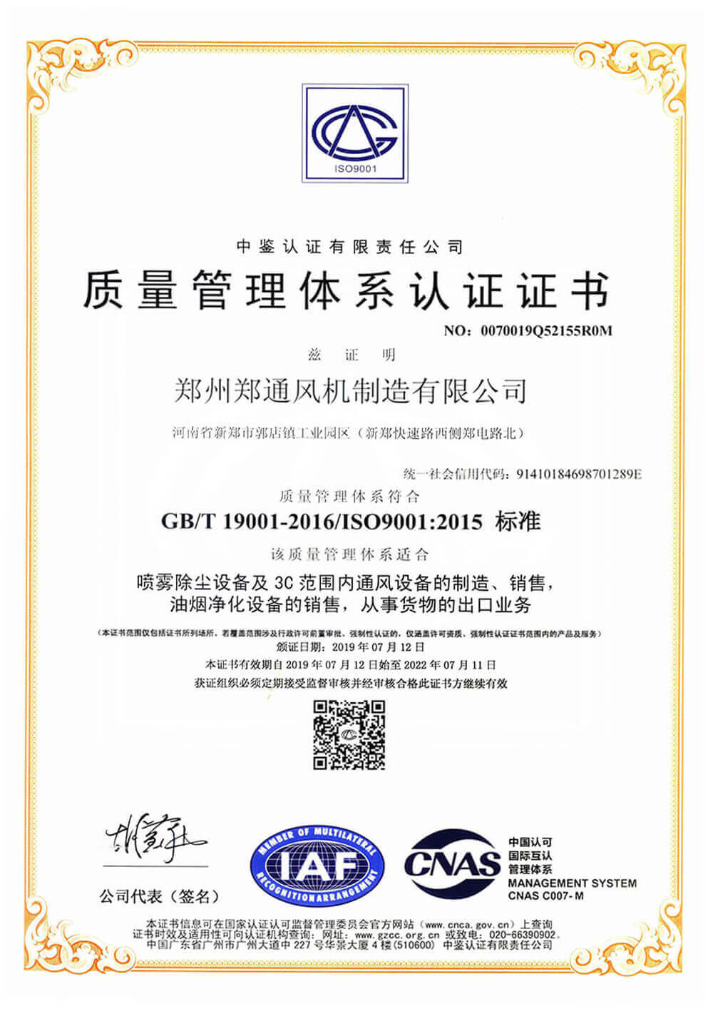 鄭通風(fēng)機(jī)主要產(chǎn)品包括:高壓風(fēng)機(jī)、不銹鋼風(fēng)機(jī)、消防排煙風(fēng)機(jī)、防腐防爆風(fēng)機(jī)、廚房排油煙風(fēng)機(jī)、玻璃鋼風(fēng)機(jī)、鍋爐引風(fēng)機(jī)、軸流風(fēng)機(jī)、柜式離心風(fēng)機(jī)、鍋爐引風(fēng)機(jī),產(chǎn)品通過(guò)ISO9001、ISO14001、ISO45001國(guó)際標(biāo)準(zhǔn)化組織制定的質(zhì)量管理體系認(rèn)證,部分產(chǎn)品通過(guò)了3C認(rèn)證和國(guó)家防爆電器產(chǎn)品質(zhì)量監(jiān)督檢驗(yàn)中心認(rèn)證。